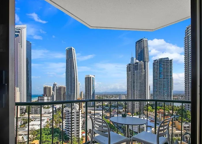 Das 37 m² große Apartment View Avenue - By The Beach & Esplanade With Hot Tub Gold Coast liegt weniger als 5 Gehminuten vom Crazy Cat Cafe entfernt und bietet einen Ausblick aufs Meer. Das Apartment ist 3 km weit weg vom Dracula's Cabaret Restaurant Gold Coast vom Bezirk Surfers' Paradise von Gold Coast.